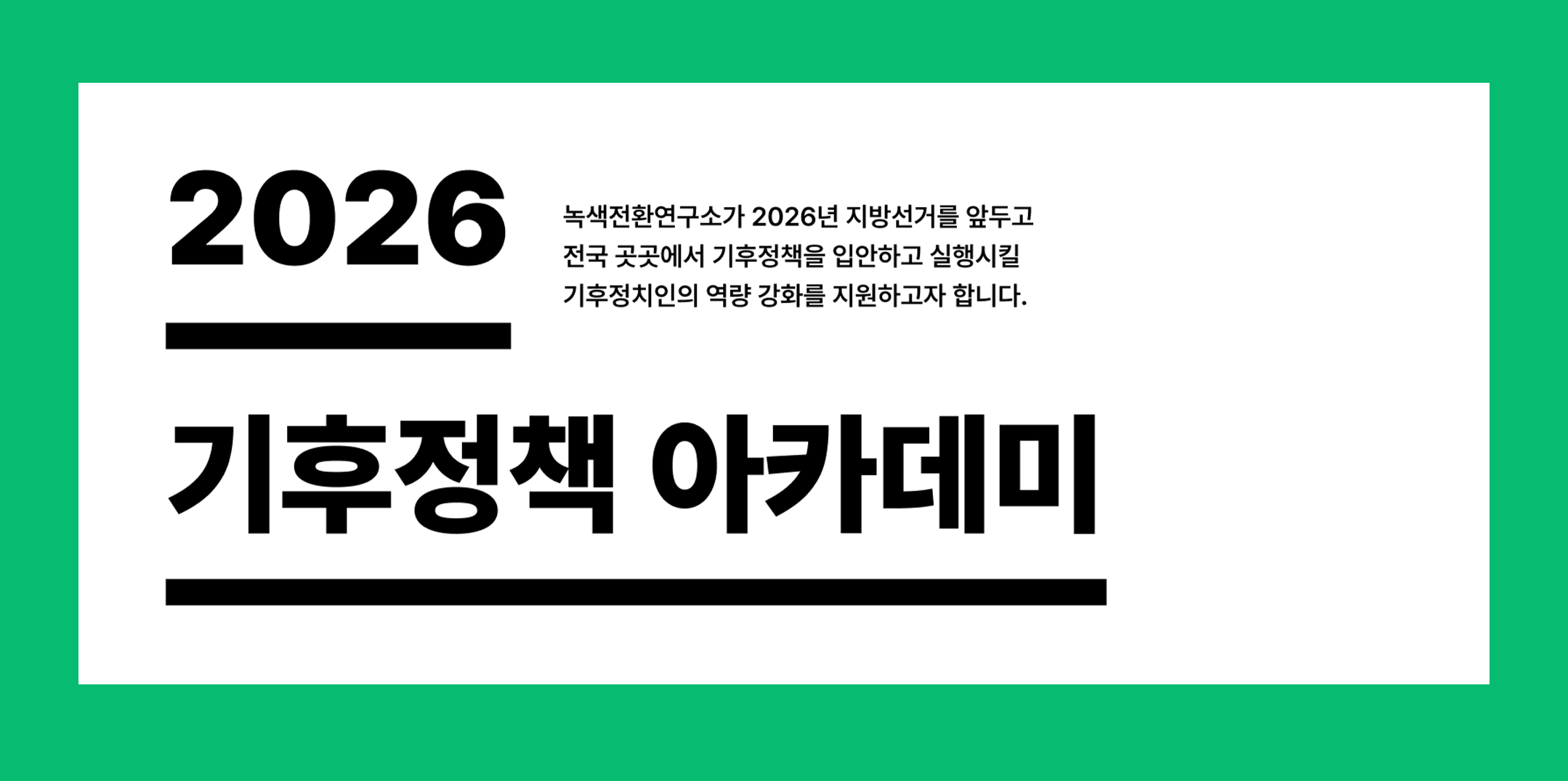 녹색전환연구소가 2026년 지방선거를 앞두고 전국 곳곳에서 기후정책에 힘을 실어줄 이들의 역량 강화를 지원하고자 합니다. 많은 분들의 관심과 참여를 기다립니다.