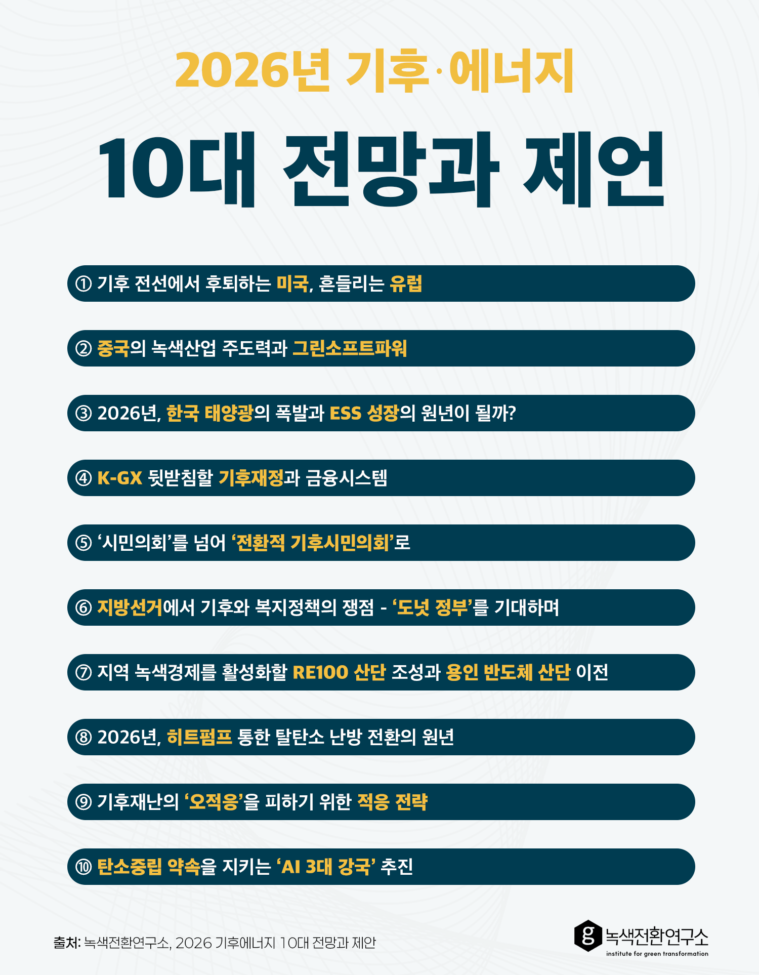 μ°κ΅¬μκ° μ΅κ·Ό λ°κ°ν β2026 κΈ°νΒ·μλμ§ 10λ μ λ§κ³Ό μ μΈβ λ³΄κ³ μμ λ΄κΈ΄ λ§μ